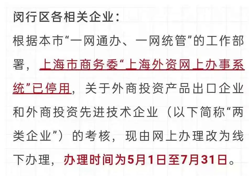 關(guān)于開展2021年閔行區(qū)外商投資先進技術(shù)企業(yè)和產(chǎn)品出口企業(yè)考核的通知