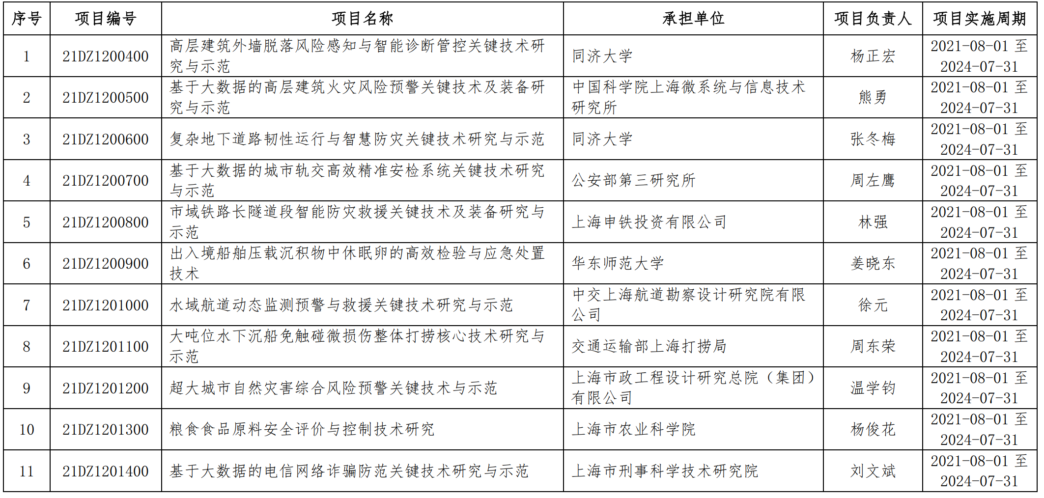 根據(jù)《關(guān)于發(fā)布上海市2021年度“科技創(chuàng)新行動計劃”社會發(fā)展科技攻關(guān)項目申報指南的通知》(滬科指南〔2021〕14號)要求,經(jīng)申報推薦、形式審查、專家評審、立項公示等程序,現(xiàn)對《高層建筑外墻脫落風(fēng)險感知與智能診斷管控關(guān)鍵技術(shù)研究與示范》等58個項目予以立項,市科委資助13870萬元,其中2021年撥款11096萬元。請各項目承擔(dān)單位做好項目組織實施和管理工作,確保按期完成項目研究任務(wù)目標。