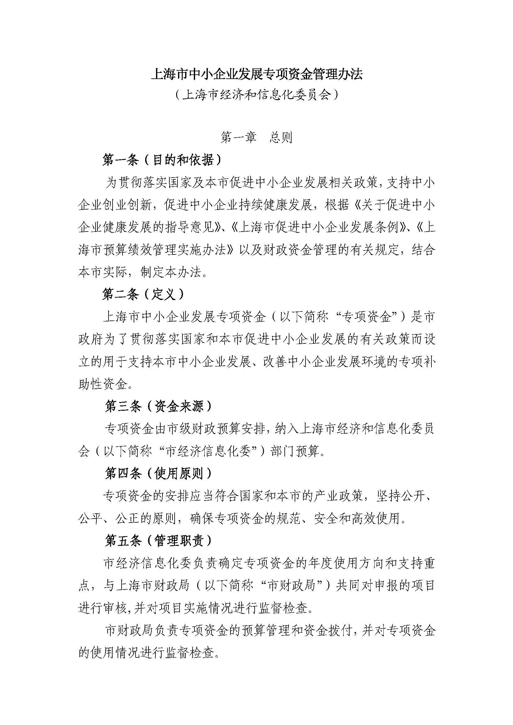 上海市中小企業(yè)發(fā)展專項(xiàng)資金管理辦法