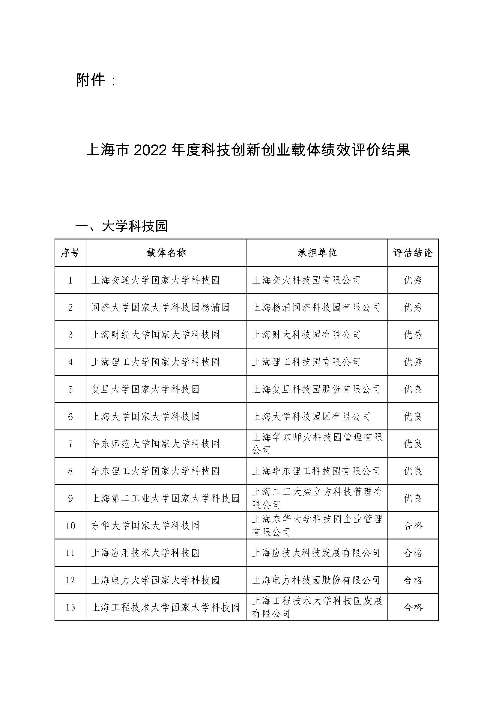 上海市2022年度科技創(chuàng)新創(chuàng)業(yè)載體績效評(píng)價(jià)結(jié)果.pdf