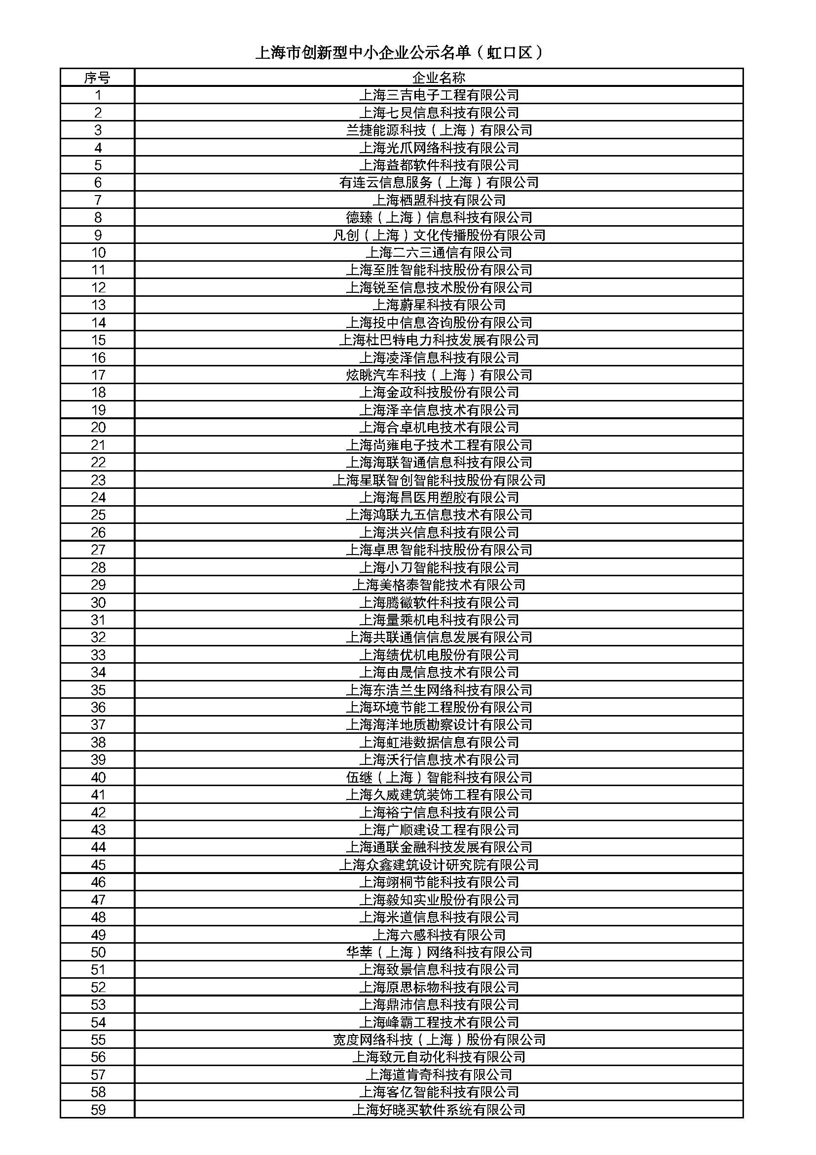 2022年上海市虹口區(qū)創(chuàng)新型中小企業(yè)名單公示
