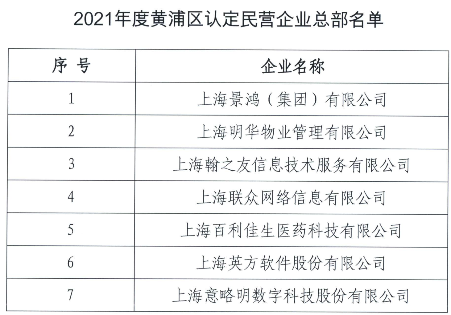 關于發(fā)布2021-2022年度黃浦區(qū)區(qū)級民營企業(yè)總部名單的通知